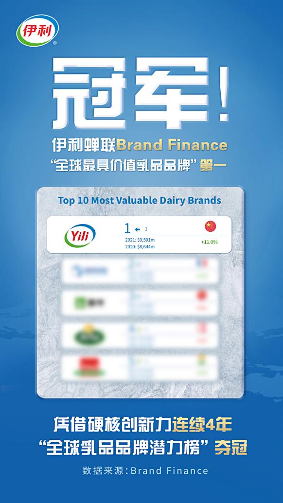 伊利為消費者的傾力付出得到了越來越多消費者的認可,在全球的品牌價值也日益凸顯。在國際權(quán)威品牌價值評估機構(gòu)Brand Finance發(fā)布的榜單中,公司更是蟬聯(lián)“全球最具價值乳品品牌10強”第一名,并連續(xù)4年在“全球乳品品牌潛力榜”中奪冠。