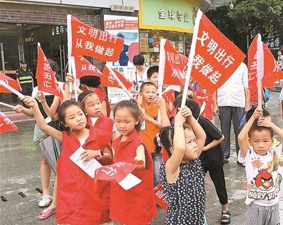 福永街道白石廈社區(qū)婦聯(lián)巾幗志愿者倡導(dǎo)文明出行。
