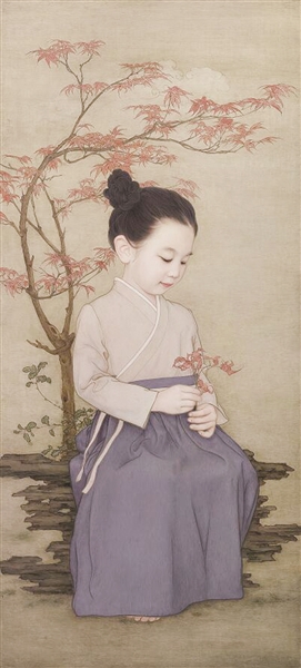 “我畫(huà)了我女兒第一張油畫(huà),就覺(jué)得她形象很好,一個(gè)小青花的背心,頭上扎了一個(gè)小髻兒,很有中國(guó)傳統(tǒng)兒童的氣質(zhì)。我就想到利用中國(guó)元素的豐富畫(huà)面,把孩子的氣質(zhì)融合進(jìn)去。在這個(gè)基礎(chǔ)上能做到融合,就是一種不一樣的風(fēng)格的出現(xiàn)?!比f(wàn)里說(shuō),把女兒作為繪畫(huà)題材的創(chuàng)作中,得到了莊老師的很多提點(diǎn),因?yàn)橹袊?guó)目前沒(méi)有這方面的探索,更多的是像徐悲鴻、林松年這樣對(duì)中國(guó)“意象”的探索。