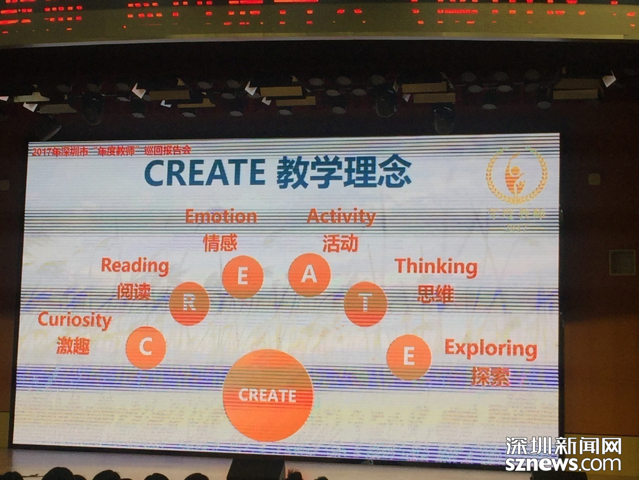 我有幸聽了一場深圳市年度教師的巡回演講,其中一個老師講到自己的幸福成長過程時,展示了自己獨有的特色教學(xué)理念——CREATE教學(xué)理念,如圖,她的所有課堂充現(xiàn)了激趣、閱讀、情感、活動、思維和探索等六大環(huán)節(jié),彰顯特色,成就精英,當(dāng)你達(dá)到如此境界時,幸福感和成就感就會水到渠成,雖然不求人人成精英,但愿人人有特色。