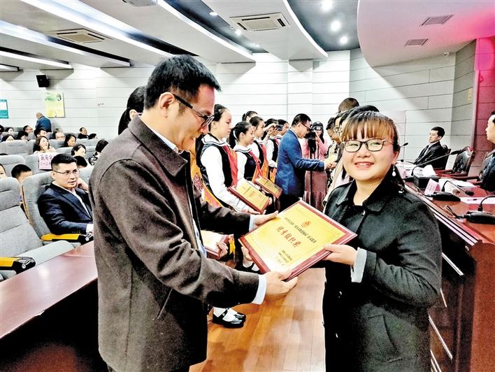 區(qū)慈善會負責人為獲獎單位頒獎。