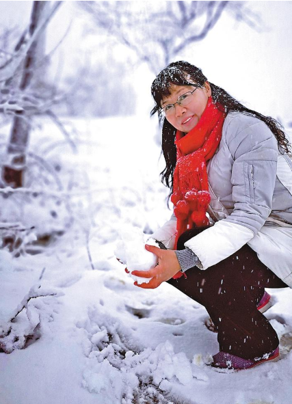 第一次直播時,恰巧下起了大雪,夏良英不顧寒冷,在氣溫零攝氏度的野外堅持上課,下課后,她還不忘在雪景中拍了幾張照片分享給學生。這樣的課堂,引得同學們紛紛點贊。