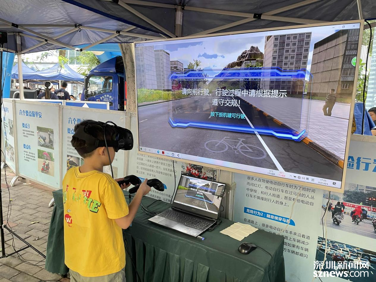居民和小朋友們戴上VR眼鏡體驗(yàn)電動(dòng)車騎行時(shí)的風(fēng)險(xiǎn)