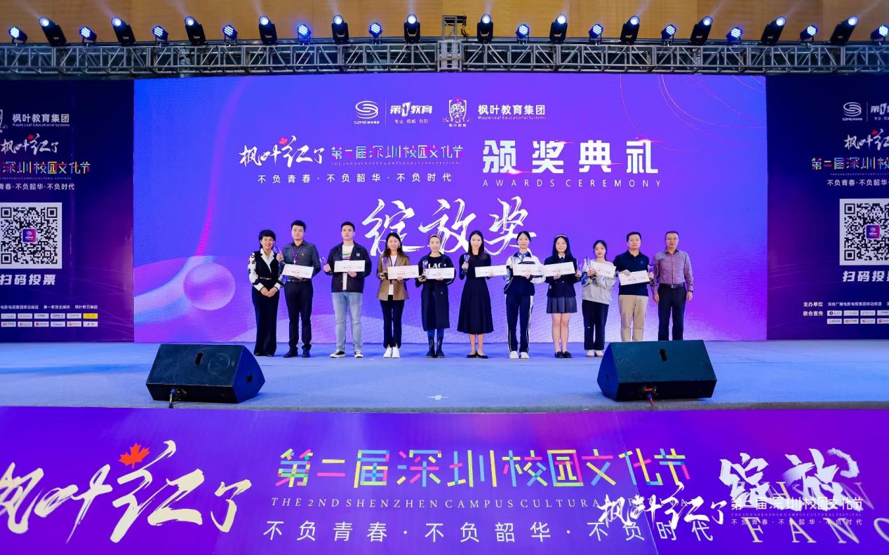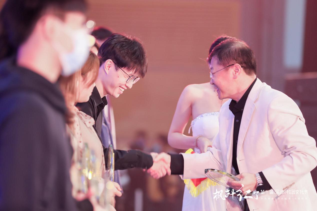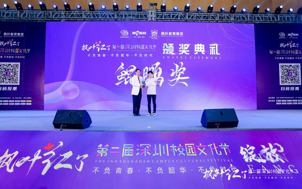 另?yè)?jù)了解,本屆活動(dòng)不以競(jìng)賽為目的,不設(shè)專業(yè)評(píng)委,不設(shè)專業(yè)分?jǐn)?shù),不設(shè)獎(jiǎng)牌等級(jí),而是以鼓勵(lì)學(xué)生全面發(fā)展、校園文化交流為初心,由觀眾們自發(fā)投票評(píng)選出魅力社團(tuán)獎(jiǎng)、優(yōu)秀指導(dǎo)老師獎(jiǎng)、鯤鵬獎(jiǎng)、綻放獎(jiǎng)、最具人氣獎(jiǎng)。記者從現(xiàn)場(chǎng)了解到,獲得本屆魅力社團(tuán)獎(jiǎng)的學(xué)校有10所,分別是:深圳市南山區(qū)文理實(shí)驗(yàn)學(xué)校(集團(tuán))《模擬聯(lián)合國(guó)社》、南山區(qū)前海學(xué)?!栋羟蜿?duì)》、深圳實(shí)驗(yàn)學(xué)校高中部《回聲合唱團(tuán)》、深圳高級(jí)中學(xué)(集團(tuán))中心校區(qū)《深高學(xué)生戲劇團(tuán)》、深圳市楓葉學(xué)?!队⒄Z(yǔ)戲劇社》、深圳市龍華中學(xué)《跆拳道空手》、深圳市蛇口育才教育(集團(tuán))育才中學(xué) 《404樂(lè)隊(duì)》、深圳市育新學(xué)校 《The best軍樂(lè)團(tuán)》、南方科技大學(xué)附屬中學(xué)《機(jī)器人隊(duì)》、深圳市藝術(shù)高中《鐘呂交響管樂(lè)團(tuán)》;獲得本屆校園文化節(jié)鯤鵬獎(jiǎng)(唯一)的學(xué)校是:南方科技大學(xué)附屬中學(xué);獲得本屆校園文化節(jié)綻放獎(jiǎng)的是9所學(xué)校,分別是:深圳市第一職業(yè)技術(shù)學(xué)校、深圳中學(xué)、深圳市藝術(shù)高中、深圳市寶安中學(xué)(集團(tuán))、深圳市第三職業(yè)技術(shù)學(xué)校、深圳市楓葉學(xué)校、深圳市龍崗區(qū)龍城高級(jí)中學(xué)、寶安區(qū)為明雙語(yǔ)實(shí)驗(yàn)學(xué)校、深圳市蛇口育才教育(集團(tuán))育才中學(xué);獲得現(xiàn)場(chǎng)最具人氣獎(jiǎng)的學(xué)校有10所,分別是:深圳市第一職業(yè)技術(shù)學(xué)校、深圳市福田區(qū)華強(qiáng)職業(yè)技術(shù)學(xué)校、深圳市第三職業(yè)技術(shù)學(xué)校、深圳大學(xué)附屬中學(xué)、紅嶺中學(xué)(集團(tuán))石廈初中部、龍崗區(qū)蘭著學(xué)校、萬(wàn)科梅沙書院、深圳市南山區(qū)文理實(shí)驗(yàn)學(xué)校(集團(tuán))、筍崗中學(xué)、寶安中學(xué)(集團(tuán));最后同時(shí)獲得本屆校園文化節(jié)優(yōu)秀指導(dǎo)老師獎(jiǎng)的學(xué)校分別來(lái)自:南方科技大學(xué)附屬中學(xué)、深圳市第一職業(yè)技術(shù)學(xué)校、深圳中學(xué)、深圳市蛇口育才教育(集團(tuán))育才中學(xué)、深圳市寶安中學(xué)(集團(tuán))、深圳市第三職業(yè)技術(shù)學(xué)校、深圳市藝術(shù)高中、深圳市楓葉學(xué)校、寶安區(qū)為明雙語(yǔ)實(shí)驗(yàn)學(xué)校、深圳市龍崗區(qū)龍城高級(jí)中學(xué)。