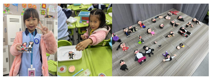 翌日,老師們再次來到華一校園,為小學部104班的學生們帶來了一場以“給老師塑像”為主題的泥塑體驗課。課堂中,老師先是一步步引導孩子該如何觀察他們的模特,后又鼓勵他們大膽動手,釋放自己的想象力和創(chuàng)造力。孩子們也都“各顯神通”,用自己獨特的方式去表現(xiàn)他們眼中老師的形象。有的為老師做了蝴蝶結,有的為老師帶上耳環(huán),有的給老師換衣服,有的給老師戴眼鏡,氣氛十分活躍。在課堂結束時,大家都興奮地捧著自己的作品,與老師、同學們分享著創(chuàng)作的喜悅。