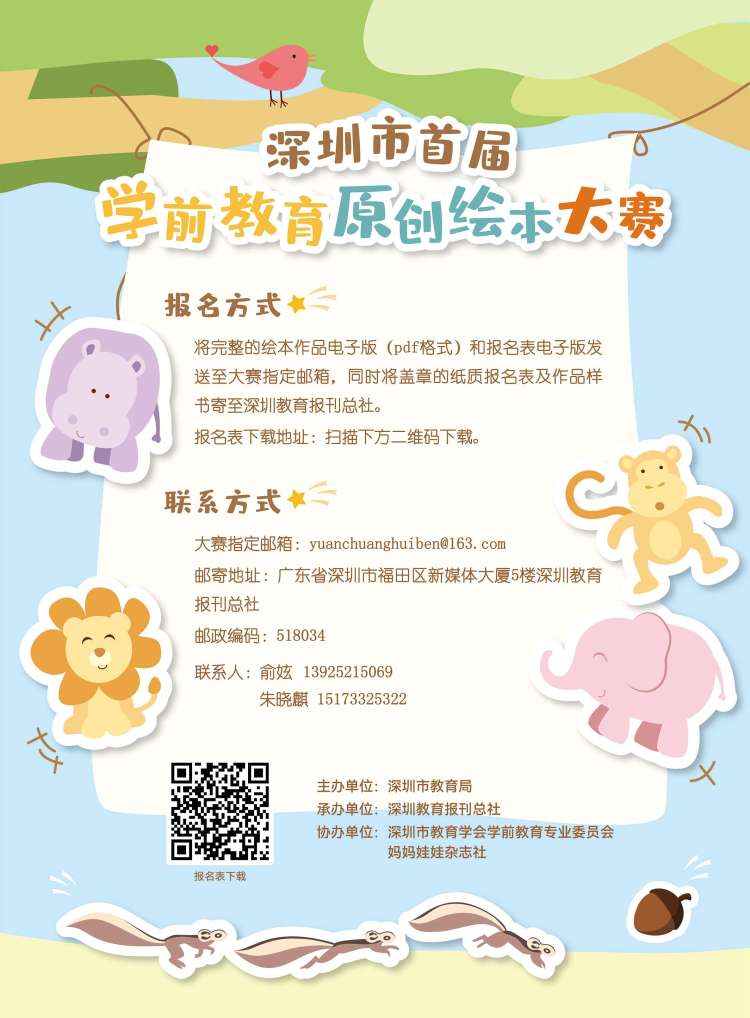 讀特客戶端·深圳新聞網(wǎng)2022年1月12日訊 (記者 陳彬 通訊員 程玉珂)由深圳市教育局主辦,深圳教育報刊總社承辦,深圳市教育學會學前教育專業(yè)委員會、媽媽娃娃雜志社協(xié)辦的深圳市首屆學前教育“故事老師”大賽暨原創(chuàng)繪本大賽將于2022年1-3月舉辦。
