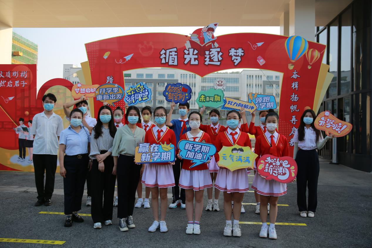 “開學(xué)季,重新出發(fā)”“新學(xué)期加油!”“歡迎新同學(xué)”……返校當(dāng)天,公明中學(xué)特別制作了歡迎展板,并安排了教師和學(xué)生代表在校門口歡迎學(xué)生返校,溫馨的氛圍充滿校園。學(xué)校校醫(yī)、交警和家長義工等也早早就位,學(xué)校打擊樂團用歡快的鼓聲為學(xué)子們加油助威,老師們則帶著甜甜的笑容為同學(xué)們送上新學(xué)年的第一份禮物——多彩繽紛的文具盲盒,令學(xué)子們感到驚喜不已。