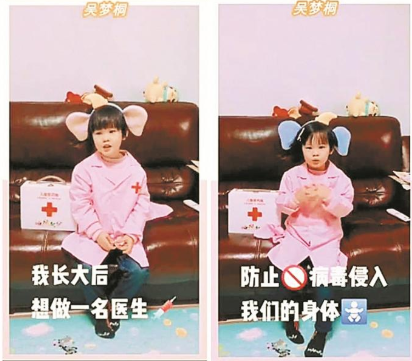 近日,深圳市梅林一村幼兒園小三巧虎班通過遠程線上溝通互動,制定創(chuàng)意計劃,用錄制才藝小視頻、編創(chuàng)兒歌等方式,為奮戰(zhàn)在抗疫一線的醫(yī)護人員打氣助力,加油祝福。