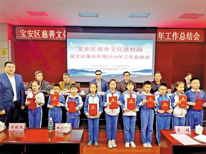 寶安區(qū)慈善文化進校園征文比賽表彰暨2019年度工作總結會在寶安實驗學校會議室舉行。會上對征文比賽獲獎者和優(yōu)秀組織單位進行表彰。