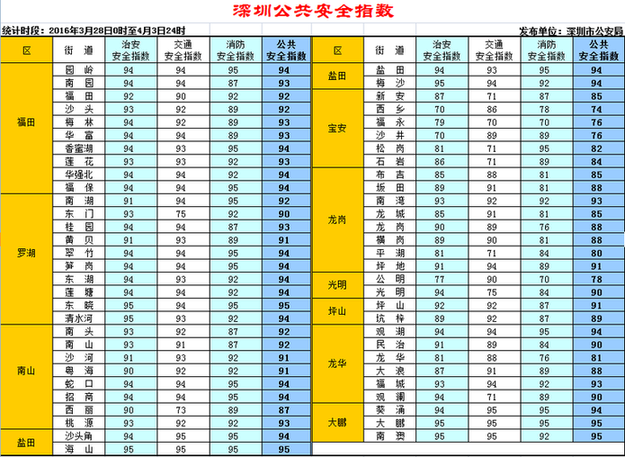 深圳新聞網(wǎng)訊 深圳市公安局圍繞市委市政府“城市管理治理年”工作部署要求,借鑒國內(nèi)其他城市的成功做法,將于4月5日開始,每周通過《深圳特區(qū)報(bào)》、《深圳新聞網(wǎng)》、市公安局門戶網(wǎng)站、公安微信、微博,向社會(huì)發(fā)布一次深圳公共安全指數(shù),保障市民群眾知情權(quán)、監(jiān)督權(quán),引導(dǎo)社會(huì)各界廣泛參與 “平安深圳”建設(shè)。