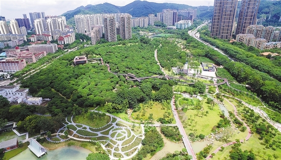 截至2016年底,深圳公園總數(shù)達(dá)921個,功能多樣、覆蓋全面的“公園之城”基本形成。圖為香蜜公園內(nèi)綠色盎然。 深圳商報記者 鐘華登攝