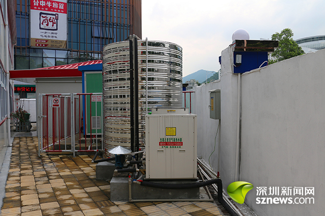 在施工駐地,施工單位還采用了耗電少的空氣能熱水器??諝饽軣崴魍ㄟ^(guò)吸收空氣中的熱量,便隨時(shí)產(chǎn)生熱水。在常年平均氣溫22.5℃的深圳,熱源充足,使用起來(lái)綠色環(huán)保又方便。