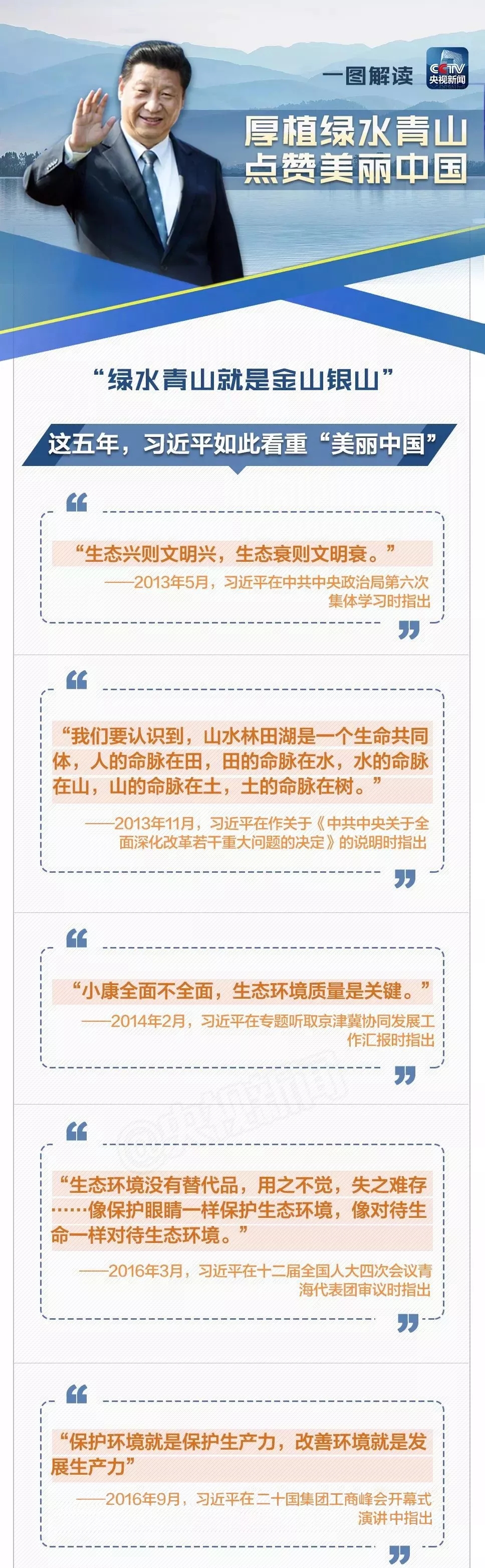 在總書記的引領(lǐng)之下,十八大以來我國建立并實施中央環(huán)境保護督察制度,大力推動綠色發(fā)展,深入實施大氣、水、土壤污染防治三大行動計劃,率先發(fā)布《中國落實2030年可持續(xù)發(fā)展議程國別方案》,實施《國家應對氣候變化規(guī)劃(2014-2020年)》,推動生態(tài)環(huán)境保護發(fā)生歷史性、轉(zhuǎn)折性、全局性變化。生態(tài)環(huán)境持續(xù)改善,碩果累累: