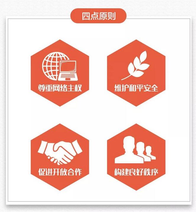 習(xí)近平曾指出,互聯(lián)網(wǎng)發(fā)展是無國(guó)界、無邊界的,利用好、發(fā)展好、治理好互聯(lián)網(wǎng)必須深化網(wǎng)絡(luò)空間國(guó)際合作,攜手構(gòu)建網(wǎng)絡(luò)空間命運(yùn)共同體。要理直氣壯維護(hù)我國(guó)網(wǎng)絡(luò)空間主權(quán),明確宣示我們的主張。為此,習(xí)近平提出“四點(diǎn)原則”和“五點(diǎn)主張”: