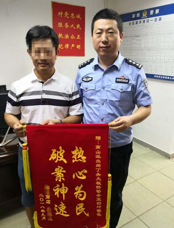 9月12日下午,事主唐先生親自帶著一面寫(xiě)有"破案神速,熱心為民"的錦旗到丁頭大板橋警務(wù)室,對(duì)南山派出所丁頭社區(qū)民警及巡防員及時(shí)為其找回被盜手機(jī)表示感謝和贊揚(yáng)。(記者 羅典 通訊員 龍威 唐婷)