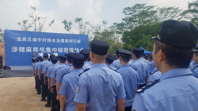 9月26日上午10時(shí)36分,在寶龍街道龍崗分局涉案物品管理中心,龍崗區(qū)舉行城中村綜合治理系列行動(dòng)之涉賭麻將機(jī)集中銷毀現(xiàn)場會(huì),一次性集中銷毀兩千余臺(tái)涉賭麻將機(jī)。
