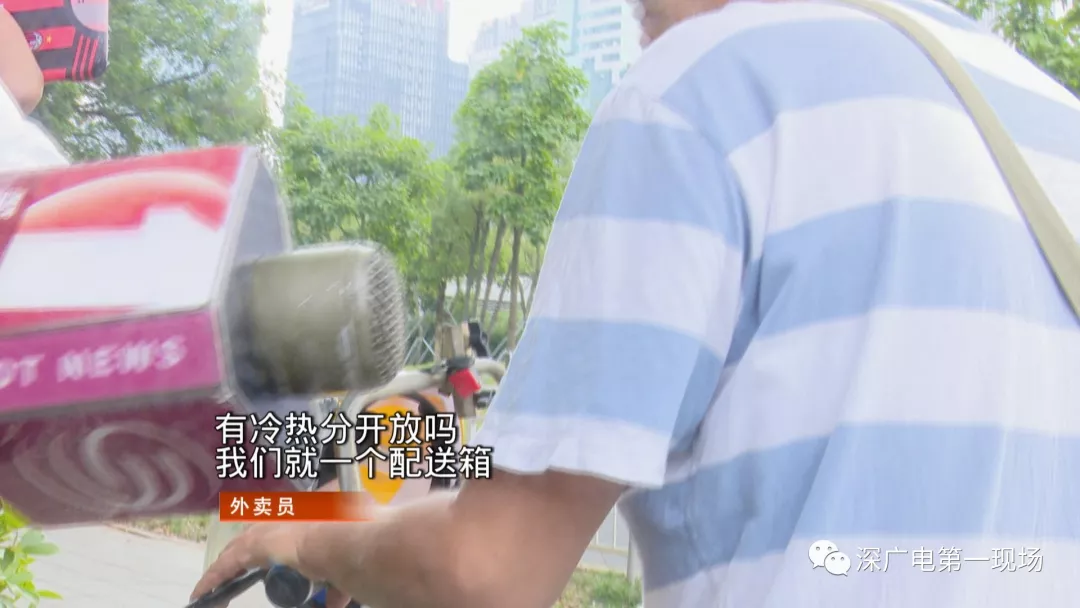 隨后送來(lái)的三份外賣(mài)里,冷飲和飯菜同樣是混合放在一個(gè)外賣(mài)箱中一起送過(guò)來(lái)。大部分外賣(mài)員反映,外賣(mài)箱沒(méi)有明確區(qū)分冷藏和熱藏區(qū)成了最大問(wèn)題,對(duì)于商家統(tǒng)一打包的冷飲和熱飯菜,他們大多也都不會(huì)主動(dòng)去分開(kāi)運(yùn)送。