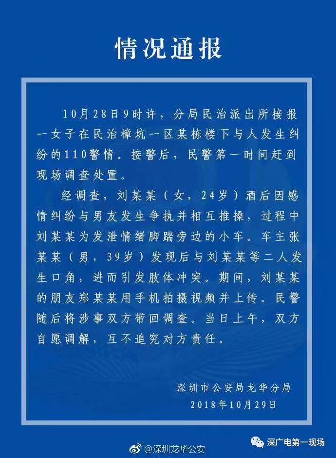 據(jù)了解,事件發(fā)生在深圳龍華區(qū)民治街道樟坑一區(qū),視頻中灰色衣服的男子是白色小車的車主,在與一名男子及一名女子發(fā)生爭執(zhí)之后,這兩人的朋友在一旁拍攝視頻,視頻拍攝者也和小車車主發(fā)生了言語沖突。