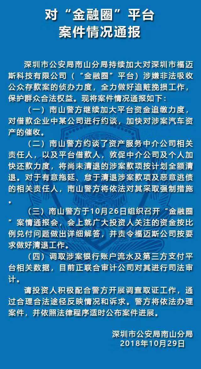 有進展!南山公安通報五家涉嫌非法集資犯罪的P2P平臺案件情況