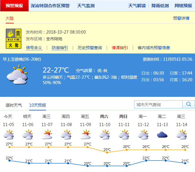5日,深圳將以多云天氣為主,部分時(shí)間可見(jiàn)陽(yáng)光。白天氣溫回升,最高氣溫在27度左右。早晚天氣清涼,最低氣溫在22度左右,溫差增大,市民應(yīng)注意預(yù)防疾病。