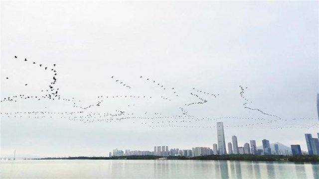 原標(biāo)題:壯觀,昨日早晨萬(wàn)鳥(niǎo)齊飛過(guò)深圳灣!