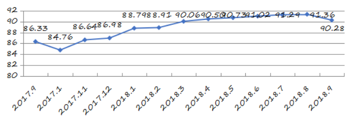 9月份羅湖區(qū)城市交通文明指數為90.35分,比上月增加1.51分,比上年同期增加4.52分,創(chuàng)下監(jiān)測以來最高分,全市排名第二(見圖6)。
