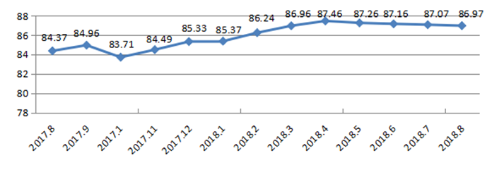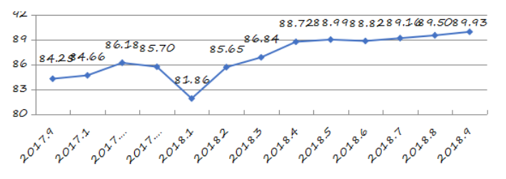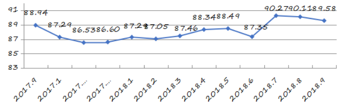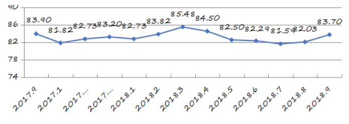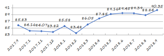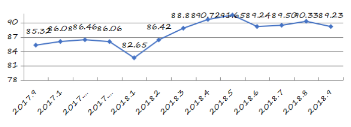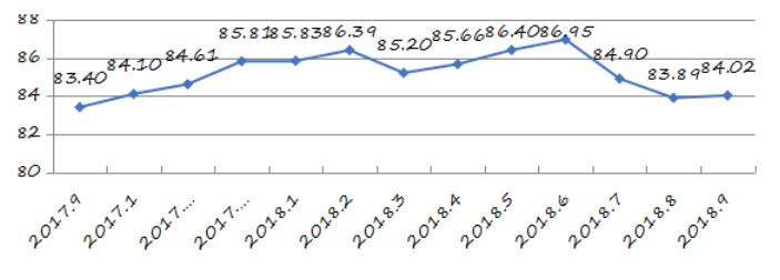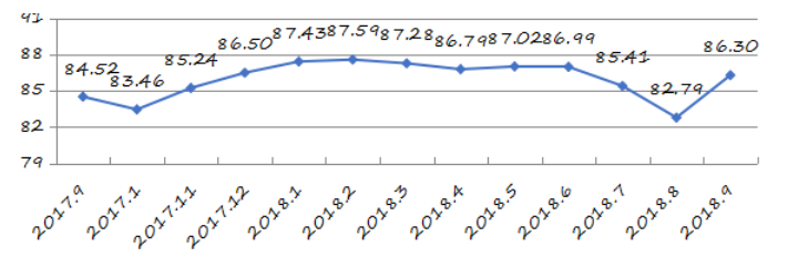 國家統(tǒng)計局深圳調查隊編制9月份深圳市城市交通文明指數為87.02分,比上月增加0.05分,比上年同期增加2.06分;深圳市城市交通文明進步指數為-0.05 % (見圖1)。