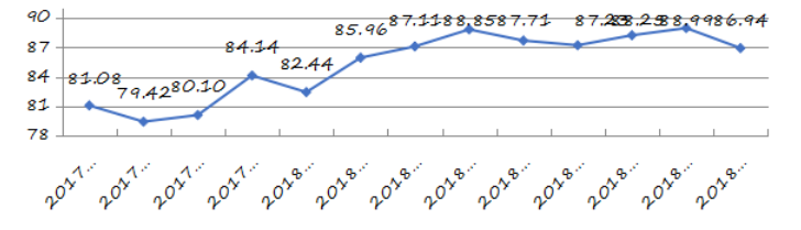 圖5大鵬新區(qū)城市交通文明指數走勢圖(計量單位:分)