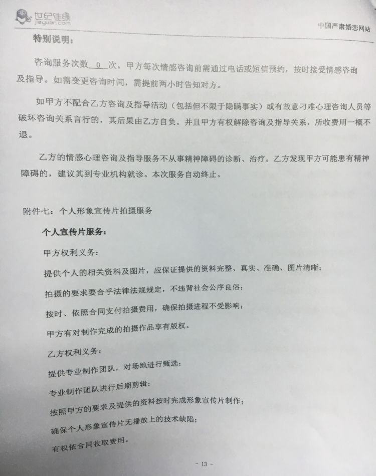 根據(jù)合同,目前服務時間已經(jīng)終止,但還有心理咨詢服務及個人宣傳片兩項增值服務未履行。朱女士對此解釋,這是屬于不收費的增值服務,需要客戶自己提出才會進行?!皼]有人跟我說過這個需要自己提出要求?!眲⑿〗銓υ撜f法并不買賬。