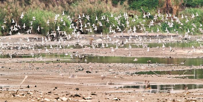 連日來,在福田紅樹林保護區(qū)內(nèi),經(jīng)常可以看到,灘涂上棲息著密密麻麻的候鳥。其中,有不少市民熟悉的面孔,幾乎每天都能看到約20只被譽為濕地明星的國家二級保護鳥類黑臉琵鷺在活動。11月7日,福田紅樹林保護區(qū)監(jiān)測到,在高潮的時候觀察魚塘,黑尾塍鷸、紅腳鷸兩種鳥類的數(shù)量分別達到四五百只,環(huán)頸鸻、鐵嘴沙鸻的數(shù)量分別也有兩三百只,候鳥們隨著潮水覓食,時而飛起又落下,時而追逐,很是壯觀。廣東內(nèi)伶仃福田自然保護區(qū)工作人員介紹,從10月上旬開始,第一批候鳥“先頭部隊”抵達深圳灣,飛翔在灘涂上,現(xiàn)在,一天比一天熱鬧,深圳的候鳥季將持續(xù)到第二年4月份。