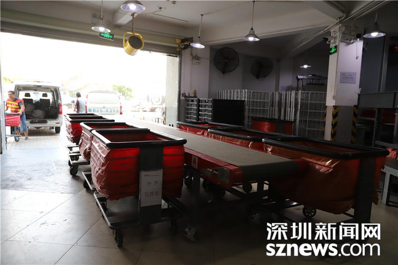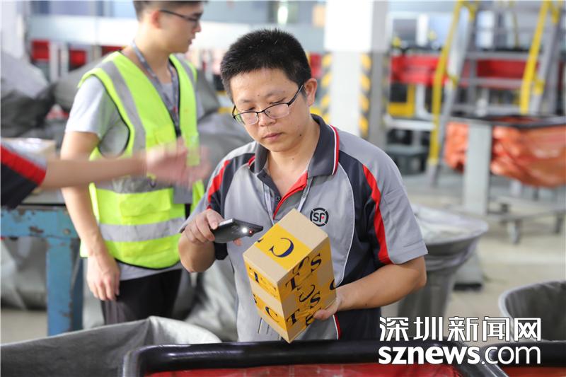 忙碌的田貝營運部內,順豐員工正在搬運包裹