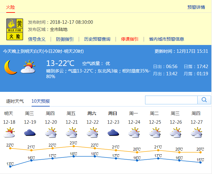 市氣象局發(fā)布未來十天天氣預(yù)報(bào)(數(shù)據(jù)更新于12月17日15時(shí)31分)