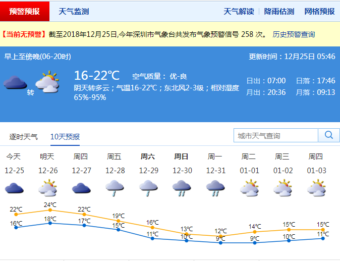 深圳今日回暖可見陽光 本周五起氣溫下降 最低溫僅10℃