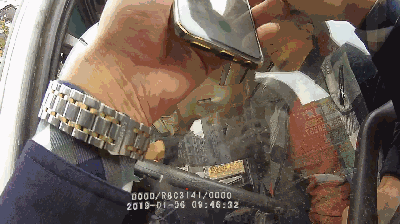 執(zhí)勤人員被迫單手抓著車(chē)窗