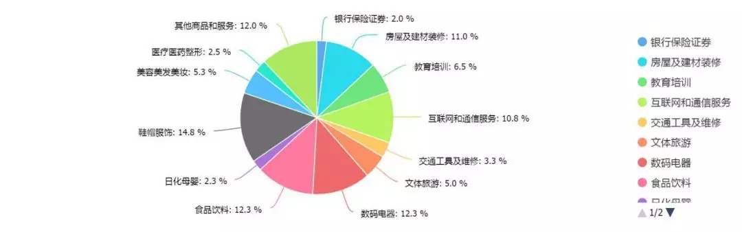 在調(diào)查的行業(yè)中,受訪者普遍反映消費(fèi)侵權(quán)主要集中在鞋帽服飾、數(shù)碼電器、食品飲料、房屋及建材裝修、互聯(lián)網(wǎng)和通訊服務(wù)行業(yè),這些行業(yè)的消費(fèi)維權(quán)數(shù)據(jù)均超過10%,而鞋帽服飾行業(yè)的侵權(quán)行為最為常見,比例高達(dá)14.8%。