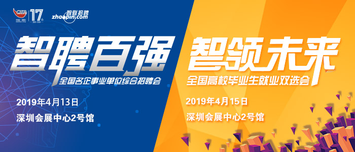 四月的深圳將迎來一波大春招,第十七屆中國國際人才交流大會將于4月14日 -15日在深圳會展中心開幕。作為大會重要組成部分,由智聯(lián)招聘執(zhí)行的2019年“智聘百強”全國名企事業(yè)單位綜合招聘會,及“智領未來”全國高校畢業(yè)生就業(yè)雙選會,將分別于4月13日、4月15日在深圳會展中心2號館舉辦。