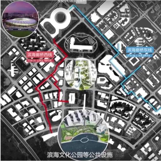 寶安中心區(qū)與前海共同作為深圳西部城市中心和城市客廳的組成部分,3月1日,位于寶安中心區(qū)的濱海廊橋開工,該濱海廊橋兼顧市民休閑、運動、景觀,實現地下、地面、地上三層一體,立體連通寶安體育場、核心商務區(qū),灣區(qū)之聲音樂廳、濱海文化公園等重大基礎設施,增強中心區(qū)通達性,強化與濱海地帶的聯系。
