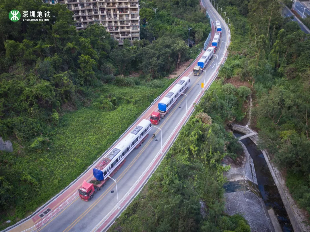 列車(chē)“乘坐”平板卡車(chē)從中車(chē)株機(jī)廠起運(yùn),經(jīng)過(guò)近1000公里的鐵公路運(yùn)輸,最后抵達(dá)深圳深云車(chē)輛段。