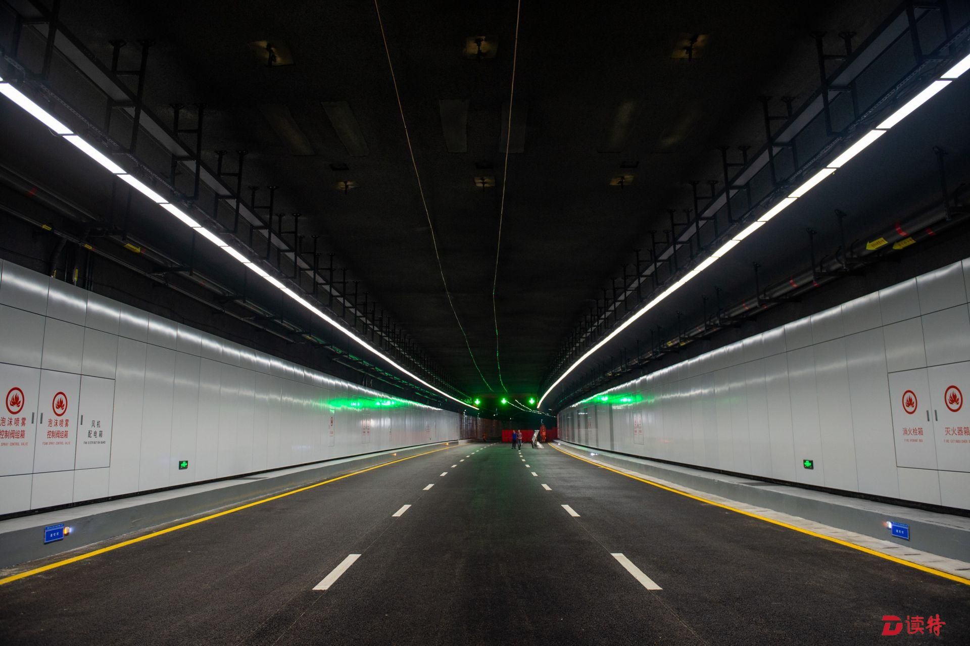 4月16日,讀特記者從臨海大道與前灣三路路口附近乘車(chē)進(jìn)入地下道路,看到前海地下道路已經(jīng)實(shí)現(xiàn)主體隧道貫通,項(xiàng)目進(jìn)入裝飾裝修和機(jī)電設(shè)備安裝階段,工人正在隧道內(nèi)安裝照明、通風(fēng)、排水、消防等設(shè)施。在項(xiàng)目工程樣版段,記者看到隧道兩側(cè)的已經(jīng)裝好搪瓷鋼板,頂部的連續(xù)燈帶和交通指示燈也已經(jīng)安裝到位,地面上也已經(jīng)劃好了分道線。中鐵四局機(jī)電公司相關(guān)負(fù)責(zé)人表示,目前前海地下道路機(jī)電裝修工程樣板已經(jīng)順利通過(guò)驗(yàn)收,為接下來(lái)大面積機(jī)電裝修施工提供了標(biāo)準(zhǔn)指引。該負(fù)責(zé)人表示:“全線共安排了一百多名工人,分區(qū)域進(jìn)行設(shè)備安裝和裝飾裝修,將確保項(xiàng)目年底竣工、2020年初通車(chē),為前海發(fā)展提供更好交通保障?!?/p>