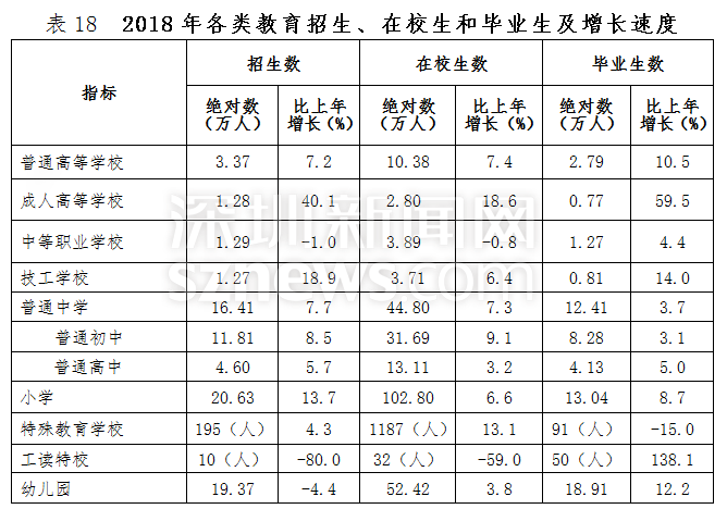 深圳新聞網(wǎng)2019年4月19日訊(記者 劉夢(mèng)婷 通訊員 胡雪濤)4月19日,記者從深圳市統(tǒng)計(jì)局獲悉,深圳市2018國(guó)民經(jīng)濟(jì)與社會(huì)發(fā)展統(tǒng)計(jì)公報(bào)出爐:全市實(shí)現(xiàn)地區(qū)生產(chǎn)總值24221.98億元,比上年增長(zhǎng)7.6%,常住人口達(dá)1302.66萬(wàn)人。人均可支配收入57543.60元,居民人均消費(fèi)支出40535.02元。總體來(lái)看,2018年深圳經(jīng)濟(jì)運(yùn)行穩(wěn)健,主要經(jīng)濟(jì)指標(biāo)表現(xiàn)良好,高質(zhì)量發(fā)展扎實(shí)推進(jìn)。