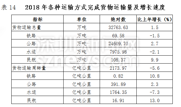全年貨物運輸總量32763.63萬噸,比上年增長1.5%。貨物運輸周轉量2173.97億噸公里,下降5.6%。