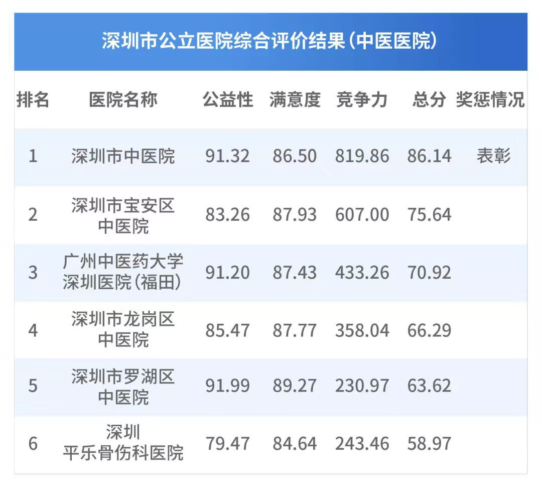 全市中醫(yī)院排名前三:深圳市中醫(yī)院、寶安區(qū)中醫(yī)院、廣州中醫(yī)藥大學深圳醫(yī)院;