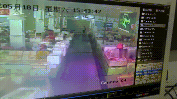 ▲視頻監(jiān)控顯示,女檔主一邊用手臂擋,一邊躲閃,無奈男子繼續(xù)發(fā)難,短短幾秒間,女檔主又被砍了數(shù)刀。