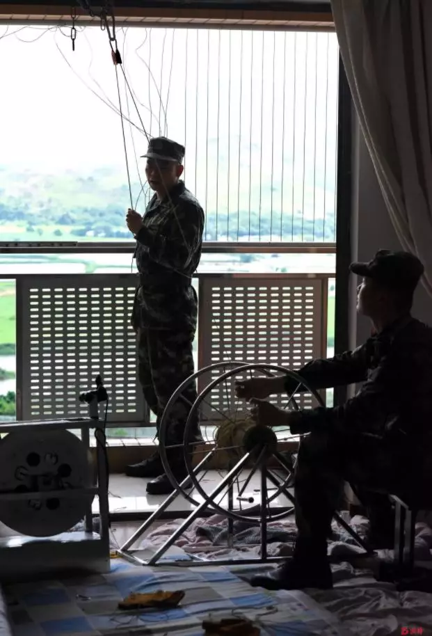 最終,在凌晨3時(shí)許,官兵們?cè)?8樓的一戶搗毀了這個(gè)窩點(diǎn),但走私分子已人去樓空。官兵們現(xiàn)場(chǎng)查獲走私分子慌忙逃竄時(shí)留下的手機(jī)、對(duì)講機(jī)、無(wú)人機(jī)、自制電動(dòng)腳手架等做案工具一套,特制的高韌度飛線一批,走私用的黑色行李袋一批。