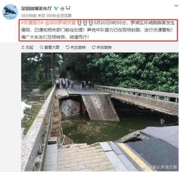 稱轄區(qū)內(nèi)的環(huán)湖路路面發(fā)生塌陷