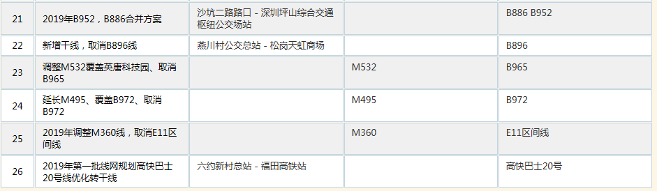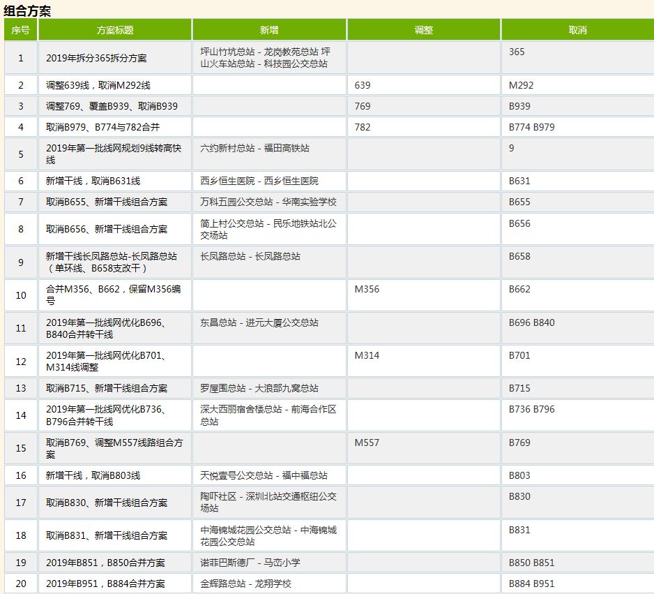 深圳新聞網(wǎng)5月20日訊(記者 涂勝)5月20日下午,深圳市交通運(yùn)輸局發(fā)布關(guān)于征求《2019年第一批公共汽車線路規(guī)劃方案》(征求意見稿)意見的通告。記者從規(guī)劃方案中的獲悉,本次線路公共汽車線路規(guī)劃方案以完成各區(qū)骨干網(wǎng)搭建及區(qū)域間快線、骨干線網(wǎng)銜接為工作重點(diǎn),共包含線路方案63個(gè),涉及線路79條(其中,新增5條,調(diào)整24條,合并、取消50條,運(yùn)力從原特區(qū)內(nèi)向原特區(qū)外轉(zhuǎn)移58臺(tái))。
