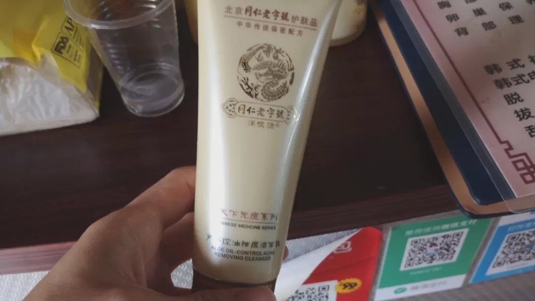 還有少數(shù)養(yǎng)生美容館,出售一款印有“北京同仁堂”字樣商標的舒緩膏,委托方是北京同仁堂化妝品有限公司,被委托方為廣州蜜妝生物科技有限公司,而生產(chǎn)許可證完全是粵妝號,而不是藥號。