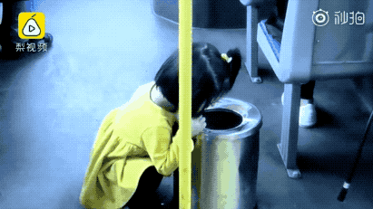 一個小學(xué)生在下車前