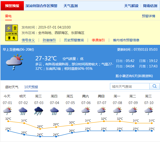 深圳新聞網(wǎng)2019年7月1日訊 深圳市氣象臺于2019年07月01日07時45分在全市取消高溫黃色預(yù),延續(xù)前幾天的高溫天氣暫時緩解。