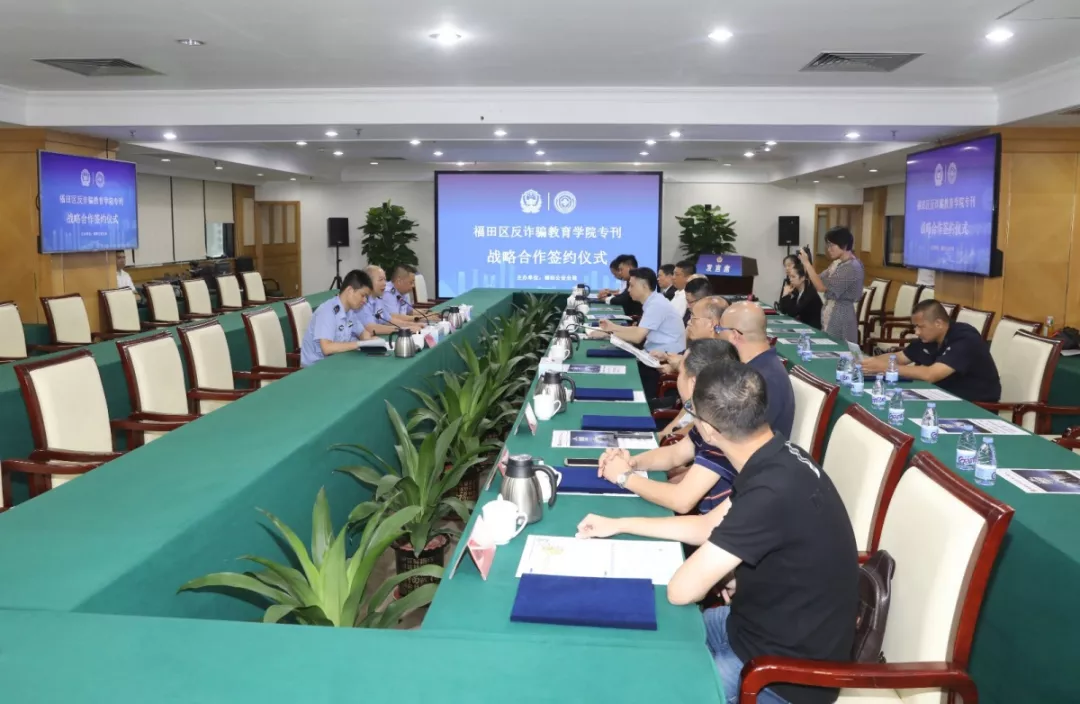 活動(dòng)現(xiàn)場(chǎng),福田分局分別與福田區(qū)委政法委、蓮花街道辦、北大深圳醫(yī)院、深圳外國語學(xué)校、中國郵政儲(chǔ)蓄銀行、聯(lián)想有限公司(深圳)、平安大廈物業(yè)、馬成時(shí)代廣場(chǎng)、卓越世紀(jì)廣場(chǎng)、山姆會(huì)員店、梅林農(nóng)批市場(chǎng)、順豐快遞共12家單位和企業(yè)簽訂了《福田反詐騙教育學(xué)院??瘧?zhàn)略合作協(xié)議》。